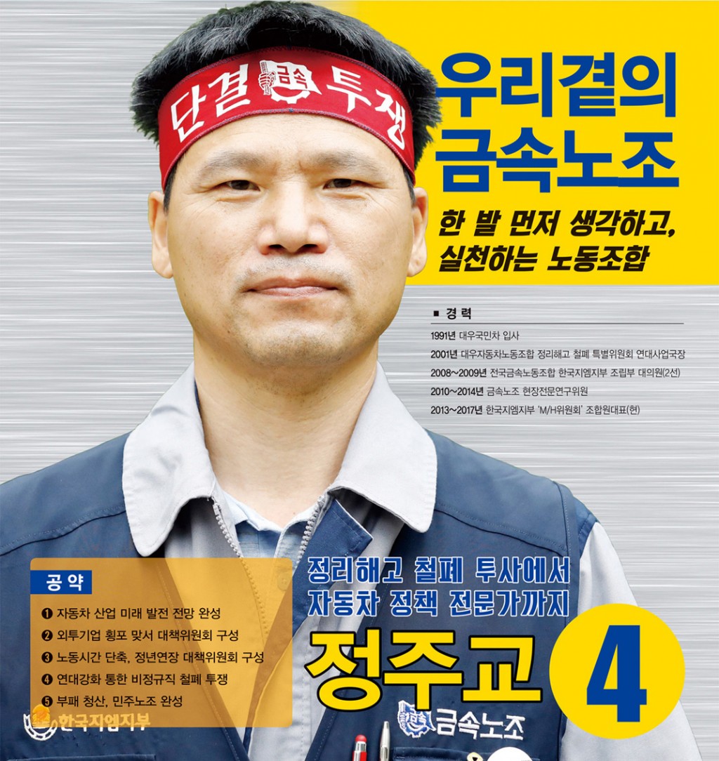 정주교 인사드립니다- 포스터 페이지 정보 작성자 정주교부위원장후보 작성일17-09-05 14:43 조회9,705회 댓글0건 본문 전국금속노동조합 10기 임원선거 일반 부위원장 기호4번 정주교 후보 댓글목록 등록된 댓글이 없습니다. 이전글 다음글 목록